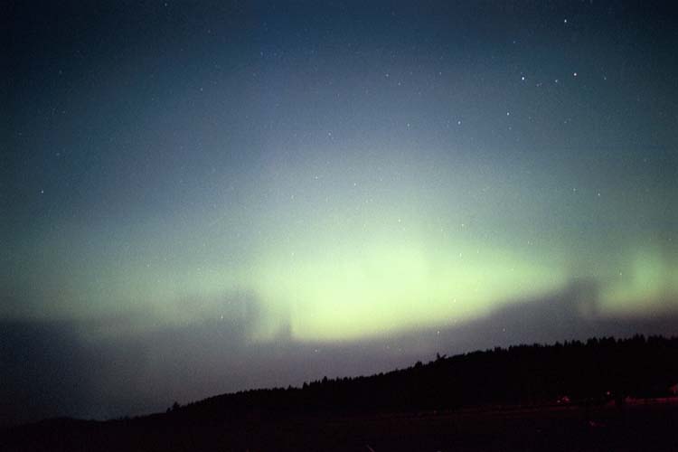 Aurora, August 17, 2003 from Hamilton, Washington, USA. You can see the rayed bands over Mt Josephine even though the photo is overexposed.Wade B Clark Jr - Hamilton, Washington, USA |