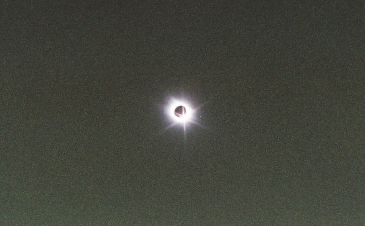 coronae, under a partly cloudy sky. As the Sun passed through transparent
