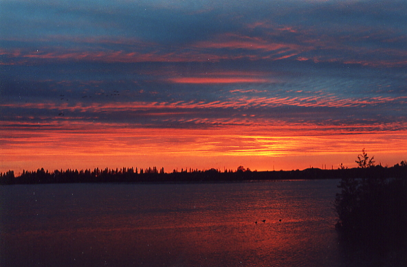 This is a picture I took in April of 2002. I was awakened at 5 AM by my husband to come look at the sunrise. As you can see, it was worth being woken up for!e-mail to: Prairie Wind Stock |